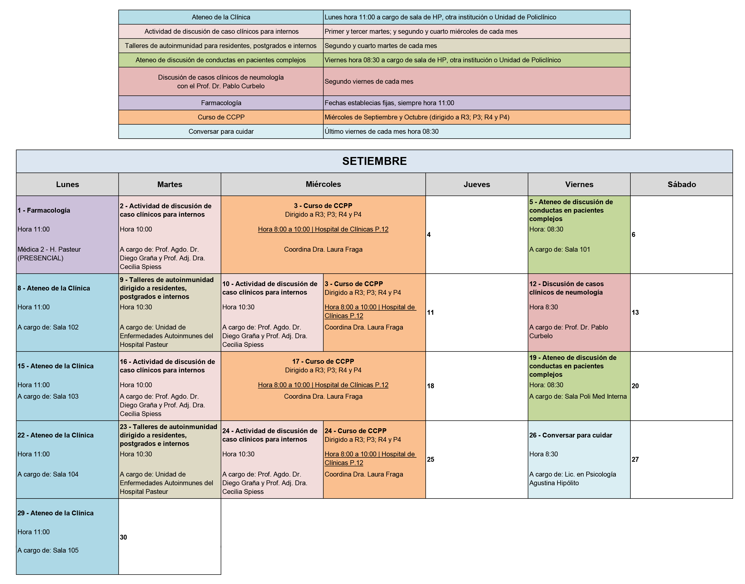 Cronograma de Actividades Académicas del mes de Setiembre 2025