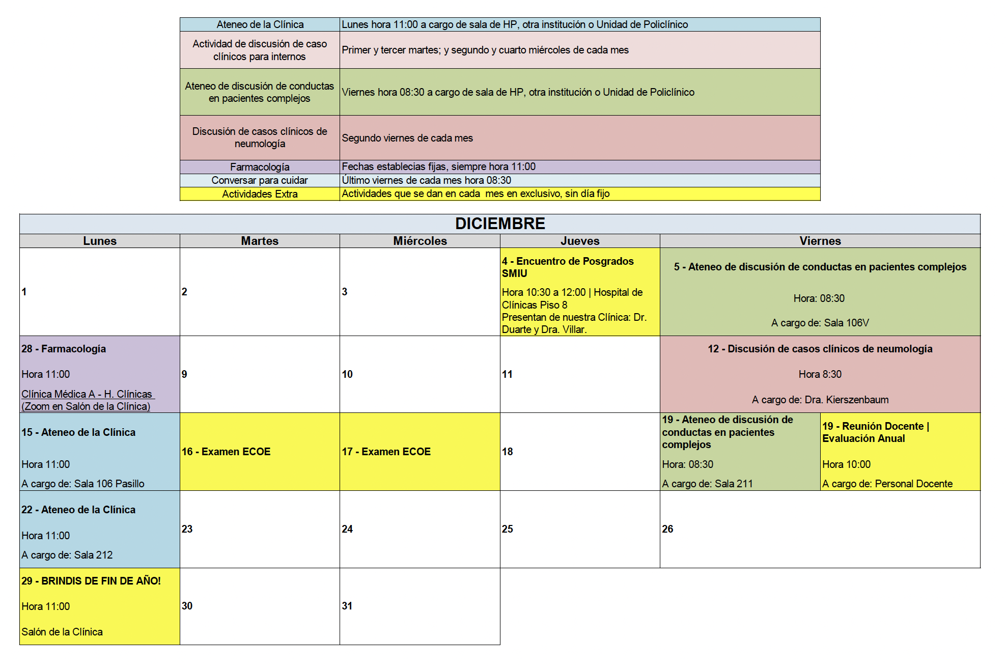Cronograma de Actividades Académicas del mes de Diciembre 2025